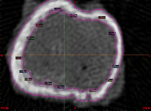 Poole KES, Rose CM, Mayhew PM, Brown J, Clement JG, Thomas C, Reeve J, Loveridge N. Thresholds for the measurement of cortical thickness in-vivo using computed tomography (the 100 women study), Calcif. Tissue Int. 2008;83(1):33.