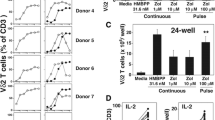 Devilder MC, Maillet S, Bouyge-Moreau I, Donnadieu E, Bonneville M, Scotet E (2006) Potentiation of antigen-stimulated V gamma 9V delta 2 T cell cytokine production by immature dendritic cells (DC) and reciprocal effect on DC maturation. J Immunol 176(3):1386–1393