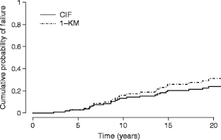 Biau DJ, Latouche A, Porcher R (2007) Competing events influence estimated survival probability: when is Kaplan-Meier analysis appropriate? Clin Orthop Relat Res 462:229–233