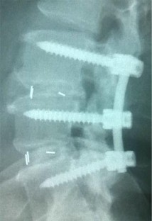 Between October 2006 and October 2010, 98 patients (61 men and 37 women) who had reached the three-year follow-up interval were treated with unilateral pedicle screw fixation at the authors’ institution. All patients underwent two-level transforaminal lumbar interbody fusion (TLIF), and the mean age was 59.6 years (range, 40–72). Visual analog scale (VAS) scores and Oswestry Disability Index (ODI) were used to assess the pre-operative and postoperative clinical results. Fusion status, the disc space height, and the whole lumbar lordotic angle were analysed for the radiological evaluation.