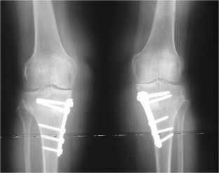 Takeuchi R, Aratake M, Bito H, Saito I, Kumagai K, Ishikawa H, Akamatsu Y, Sasaki Y, Saito T (2008) Simultaneous bilateral opening-wedge high tibial osteotomy with early full weight-bearing exercise. Knee Surg Sports Traumatol Arthrosc 16:1030–1037