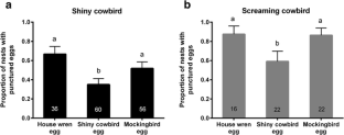 Cossa, N.A., Tuero, D.T., Reboreda, J.C. et al. Egg pecking and puncturing behaviors in shiny and screaming cowbirds: effects of eggshell strength and degree of clutch completion. Behav Ecol Sociobiol 71, 60 (2017). https://doi.org/10.1007/s00265-017-2289-1