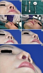 Ten women with mucosal defects of the nasal septum were enrolled from May 2017 to May 2018. Liquid and gel CGF was prepared from each patient’s blood sample using a Medifuge system, including benchtop centrifuge. After debridement of the defect, the prepared liquid CGF was injected around the wound, and a membranous CGF film was applied to the surface. Vaseline gauze was used to pack the nostrils. All patients were treated with CGF at intervals from 3 to 5 days.