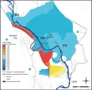 Ayres Associates. 2002. Two-dimensional hydraulic modeling of the Upper Sacramento River, RM 194.0 TO RM 202.0, including riparian restoration, two setback levee alternatives, and east levee removal. Glenn and Butte Counties, California. Report to The Nature Conservancy. Available from http://www.sacramentoriverportal.org