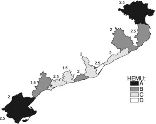 Geographical areas constitute the basic implementation locus for integrated coastal zone management strategies and activities. Because the definition of territorial planning objectives may be affected by socioeconomic and environmental characteristics, one of the main steps in the process involves dividing the coast into homogeneous environmental management units (HEMUs). This article presents a general and simple method for regionalizing the landside of a coastal zone into HEMUs and illustrates it through application to the Catalan coast. Socioeconomic and natural (biophysical) subsystems were selected as the most appropriate dimensions of the regionalization process. Dimensions were described using 11 spatial themes, which were managed in a geographic information system environment that proved to be an adequate tool for the purpose. A final coastal zone map of four classes of HEMUs connected to local administrative units was obtained, and because it reflects the current natural and socioeconomic dynamics, it can be considered as an initial step in the planning process for the Catalan coast. Although the proposed method was developed based on the characteristics of the Catalan coast, it is general enough to be adapted and applied to most developed or developing coastal areas.