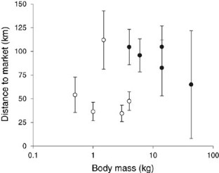 Cowlishaw G, Mendelson S, Rowcliffe JM (2004) The bushmeat commodity chain: patterns of trade and sustainability in a mature urban market in West Africa. ODI Wildlife Policy Briefing, Number 7, June 2004