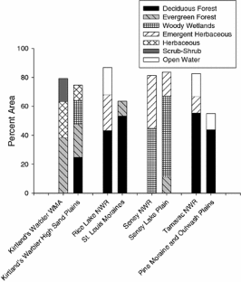 To facilitate forest planning and management on National Wildlife Refuges, we synthesized multiple data sources to describe land ownership patterns, land cover, landscape pattern, and changes in forest composition for four ecoregions and their associated refuges of the Upper Midwest. We related observed patterns to ecological processes important for forest conservation and restoration, with specific attention to refuge patterns of importance for forest landbirds of conservation priority. The large amount of public land within the ecoregions (31–80%) suggests that opportunities exist for coarse and meso-scale approaches to conserving and restoring ecological processes affecting the refuges, particularly historical fire regimes. Forests dominate both ecoregions and refuges, but refuge forest patches are generally larger and more aggregated than in associated ecoregions. Broadleaf taxa have increased in dominance in the ecoregions and displaced fire-dependent taxa such as pine (Pinus spp.) and other coniferous species; these changes in forest composition have likely also affected refuge forests. Despite compositional changes, larger forest patches on refuges suggests that they may provide better habitat for area-sensitive forest landbirds of mature, compositionally diverse forests than surrounding lands if management continues to promote increased patch size. We reason that although fine-scale research and monitoring for species of conservation priority is important, broad scale (ecoregional) assessments provide crucial context for effective forest and wildlife management in protected areas.