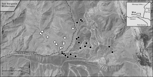 Our research was supported by the California Energy Commission Public Interest Energy Research Program (Contract NO: 500-09-020), the California Desert District Office of the Bureau of Land Management, and the Desert Legacy Fund of the California Desert Research Program, and University of Kentucky, Department of Forestry. Research was conducted under permits from the United States Fish and Wildlife Service, California Department of Fish and Game, and the Bureau of Land Management. Charles Yackulic, Jeff Laake and Simon Bonner provided statistical advice. Early manuscript reviews were conducted by Kenneth E. Nussear. Special thanks are given to A. Muth of the Boyd Deep Canyon Desert Research Center of the University of California, Riverside, for providing accommodations during our research. Any use of trade, product, or firm names is for descriptive purposes only and does not imply endorsement by the U.S. Government.