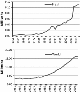 Brazilian Institute of Geography and Statics (IBGE) (2015) SIDRA/PAM Table 1612 (variable harvested area of Sugarcane in 2013) consulted April 22, 2015. http://www.sidra.ibge.gov.br/