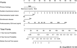 Kanemitsu Y, Kato T, Hirai T et al (2004) Preoperative probability model for predicting overall survival after resection of pulmonary metastases from colorectal cancer. Br J Surg 91(1):112–120
