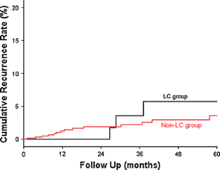 A total of 780 eligible patients including 129 (16.5%) patients with LC underwent inguinal hernia repair with the standard McVay procedure by a single surgeon over a 10-year period. Patients were prospectively registered and clinical data were analyzed retrospectively.