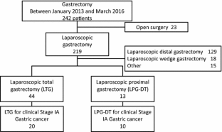 Ahn SH, Lee JH, Park DJ et al (2013) Comparative study of clinical outcomes between laparoscopy-assisted proximal gastrectomy (LAPG) and laparoscopy-assisted total gastrectomy (LATG) for proximal gastric cancer. Gastric Cancer 16:282–289