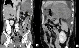 Kumar A, Bagaria D, Ratan A, Gupta A (2017) Missed diaphragmatic injury after blunt trauma presenting with colonic strangulation: a rare scenario. BMJ Case Rep 2017:bcr2017221220. https://doi.org/10.1136/bcr-2017-221220
