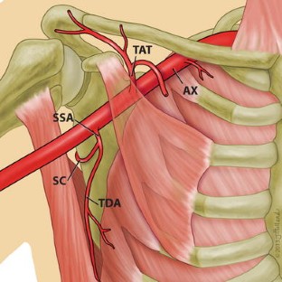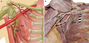 Olinger A, Benninger B (2010) Branching patterns of the lateral thoracic, subscapular and posterior circumflex humeral arteries and their relationship to the posterior cord of the brachial plexus. Clin Anat 23:407–412