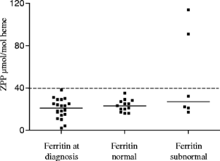 Harthoorn-Lasthuizen EJ (2000) Erythrocyte zinc protoporphyrin in the diagnosis of iron deficiency. Academisch Proefschrift 2:26–27