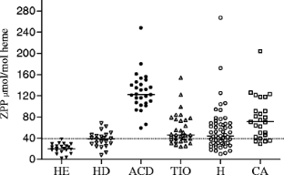 Hastka J, Lasserre JJ, Schwarzbeck A, Strauch M, Hehlmann R (1991) Zinc protoporphyrin: a screening parameter of iron metabolism. Onkologie 14:62–63