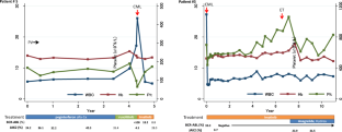 Pingali SR et al (2009) Emergence of chronic myelogenous leukemia from a background of myeloproliferative disorder: JAK2V617F as a potential risk factor for BCR-ABL translocation. Clin Lymphoma Myeloma 9(5):E25–E29