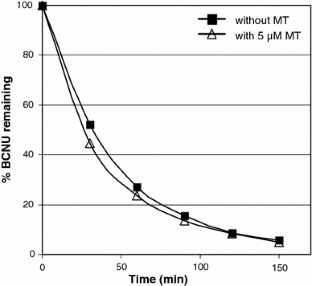 Ali-Osman F, Caughlan J, Gray GS (1989) Decreased DNA interstrand cross-linking and cytotoxicity induced in human brain tumor cells by 1,3-bis(2-chloroethyl)-1-nitrosourea after in vitro reaction with glutathione. Cancer Res 49:5954–5958