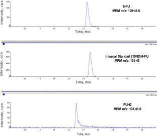 Lostia AM, Lionetto L, Ialongo C, Gentile G, Viterbo A, Malaguti P, Paris I, Marchetti L, Marchetti P, De Blasi A, Simmaco M (2009) A liquid chromatography–tandem mass spectrometry method for the determination of 5-fluorouracil degradation rate by intact peripheral blood mononuclear cells. Ther Drug Monit 31:482–488