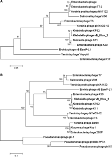 Drulis-Kawa Z, Mackiewicz P, Kesik-Szeloch A, Maciaszczyk-Dziubinska E, Weber-Dabrowska B, Dorotkiewicz-Jach A, Augustyniak D, Majkowska-Skrobek G, Bocer T, Empel J, Kropinski AM (2011) Isolation and characterisation of KP34-a novel phiKMV-like bacteriophage for Klebsiella pneumoniae. Appl Microbiol Biotechnol 90:1333–1345. doi:10.1007/s00253-011-3149-y
