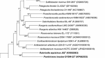 Shiba T (1991) Roseobacter litoralis gen. nov., sp. nov., and Roseobacter denitrificans sp. nov., aerobic pink-pigmented bacteria which contain bacteriochlorophyll a. Syst Appl Microbiol 14:140–145