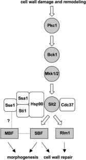 Kim KY, Truman AW, Levin DE (2008) Yeast Mpk1 mitogen-activated protein kinase activates transcription through Swi4/Swi6 by a noncatalytic mechanism that requires upstream signal. Mol Cell Biol 28:2579–2589