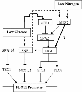 Rupp S, Summers E, Lo HJ, Madhani H, Fink G (1999) MAP kinase and cAMP filamentation signaling pathways converge on the unusually large promoter of the yeast FLO11 gene. EMBO J 18:1257–1269