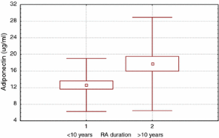 Targońska-Stępniak B, Majdan M, Dryglewska M (2008) Leptin serum levels in rheumatoid arthritis patients: relation to disease duration and activity. Rheumatol Int 28:585–591