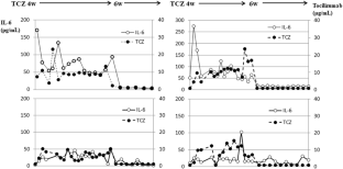 Saiki O, Uda H (2017) Successful extension of tocilizumab infusion intervals from 4 weeks to 6 or 5 weeks in 90% of RA patients with good response to 4-week intervals. Clin Exp Rheumatol 35:666–670