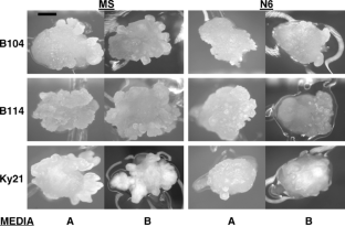 Songstad DD, Armstrong CL, Petersen WL (1991) AgNO3 increased Type II callus production from immature embryos of maize inbred B73 and its derivatives. Plant Cell Rep 9:699–702