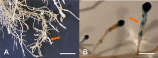 Boisson-Dernier A, Chabaud M, Garcia F, Bécard G, Rosenberg C, Barker DG (2001) Agrobacterium rhizogenes-transformed roots of Medicago truncatula for the study of nitrogen-fixing and endomycorrhizal symbiotic associations. Mol Plant Microbe Interact 14:695–700