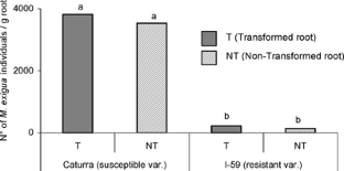 Plovie E, de Buck S, Goeleven E, Tanghe M, Vercauteren I, Gheysen G (2003) Hairy roots to test for transgenic nematode resistance: think twice. Nematology 5:831–841