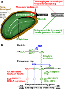 Linkies A, Müller K, Morris K, Tureckova V, Wenk M, Cadman CSC, Corbineau F, Strnad M, Lynn JR, Finch-Savage WE, Leubner-Metzger G (2009) Ethylene interacts with abscisic acid to regulate endosperm rupture during germination: a comparative approach using Lepidium sativum and Arabidopsis thaliana. Plant Cell 21:3803–3822