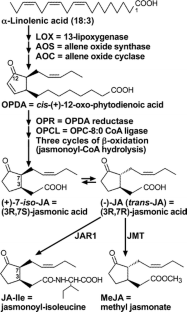 Miersch O, Neumerkel J, Dippe M, Stenzel I, Wasternack C (2008) Hydroxylated jasmonates are commonly occurring metabolites of jasmonic acid and contribute to a partial switch-off in jasmonate signaling. New Phytol 177(1):114–127
