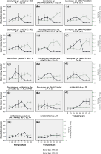 Kochkina GA, Ivanushkina NE, Akimov VN, Gilichinskii DA, Ozerskaya SM (2007) Halo- and psychrotolerant Geomyces fungi from Arctic cryopegs and marine deposits. Microbiology 76:31–38