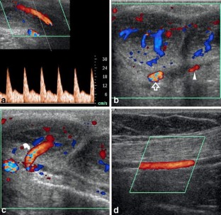 Bertolotto M, de Stefani S, Martinoli C, Quaia E, Buttazzi L (2002) Color Doppler appearance of penile cavernosal-spongiosal communications in patients with severe Peyronie’s disease. Eur Radiol 12:2525–2531