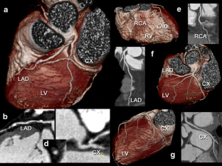 Herzog B, Husmann L, Burkhard N, Gaemperli O, Valenta I, Tatsugami F, Wyss C, Landmesser U, Kaufmann P (2008) Accuracy of low-dose computed tomography coronary angiography using prospective electrocardiogram-triggering: first clinical experience. Eur Heart J 29:3037–3042