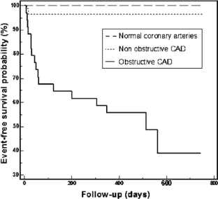 Pundziute G, Schuijf JD, Jukema JW, Boersma E, de Roos A, van der Wall E, Bax JJ (2007) Prognostic value of multislice computed tomography coronary angiography in patients with known or suspected coronary artery disease. J Am Coll Cardiol 49:62–70