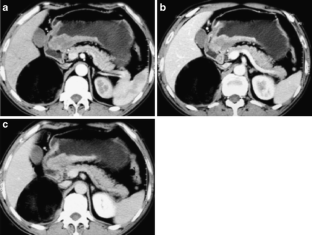 Tsuda K, Hori S, Murakami T, Nakamura H, Tomoda K, Nakanishi K, Shiozaki H (1995) Intramural invasion of gastric cancer: evaluation by CT with water-filling method. J Comput Assisted Tomogr 19:941–947