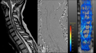 4D PC MR imaging allows for a detailed assessment of CSF flow dynamics helping to distinguish physiological from complex pathological flow patterns at the craniocervical junction and the cervical spine.
