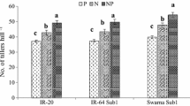 Gautam, P., Lal, B., Tripathi, R. et al. Impact of Seedling Age and Nitrogen Application on Submergence Tolerance of Sub1 and Non-Sub1 Cultivars of Rice (Oryza sativa L.). J Plant Growth Regul 36, 629–642 (2017). https://doi.org/10.1007/s00344-016-9661-7
