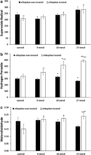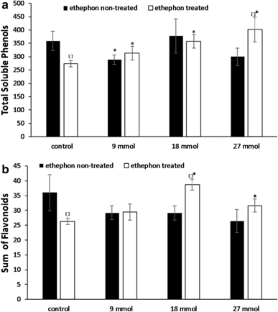 Khan N, Mir MR, Nazar R, Singh S (2008) The application of ethephon (an ethylene releaser) increases growth, photosynthesis and nitrogen accumulation in mustard (Brassica juncea L.) under high nitrogen levels. Plant Biol 10:534–538