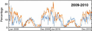 Repeated releases of experienced homing pigeons from single sites were conducted between 1972 and 1974 near Cornell University in upstate New York and between 1982 and 1983 near the University of Pittsburgh in western Pennsylvania, USA. No annual variation in homing performance was observed at these sites in eastern North America, in contrast to results from a number of similar experiments in Europe. Assuming pigeons home using low-frequency infrasonic signals (~0.1–0.3 Hz), as has been previously proposed, the annual and geographic variability in homing performance within the northern hemisphere might be explained, to a first order, by seasonal changes in low-frequency atmospheric background noise levels related to storm activity in the North Atlantic Ocean, and by acoustic waveguides formed between the surface and seasonally reversing stratospheric winds. In addition, increased dispersion among departure bearings of test birds on some North American release days was possibly caused by infrasonic noise from severe weather events during tornado and Atlantic hurricane seasons.