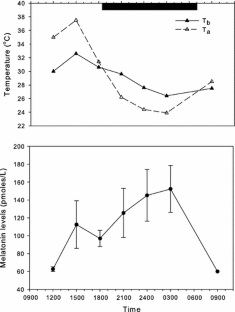 We thank Ajio Pereira for help in the field and Shawn Rowe for technical assistance with the melatonin assays. Financial support was provided by grants from the University of Adelaide Faculty of Health Sciences. This research was conducted with approval and permits from the Northern Territory University (now called Charles Darwin University) Animal Experimentation Ethics Committee and the Conservation Commission of the Northern Territory, Australia.