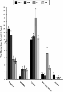 German DP, Horn MH, Gawlicka A (2004) Digestive enzyme activities in herbivorous and carnivorous prickleback fishes (Teleostei: Stichaeidae): ontogenetic, dietary, and phylogenetic effects. Physiol Biochem Zool 77:789–804. doi:10.1086/422228