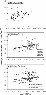 Sparling CE, Fedak MA (2004) Metabolic rates of captive grey seals during voluntary diving. J Exp Biol 207:1615–1624