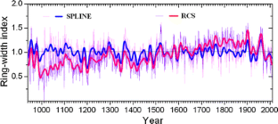 Esper J, Cook ER, Krusic P, Peters K, Schweingruber FH (2003a) Tests of the RCS method for preserving low-frequency variability in long tree-ring chronologies. Tree-Ring Res 59:81–98