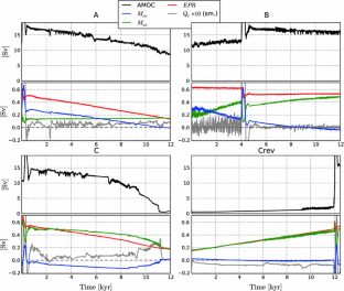 The terms in Eq. 3 for the control state of the EMIC SPEEDO are reported in Table 2. Very similar numbers are obtained for the HCM. In the model, the freshwater anomalies are implemented as a virtual salt flux, which can easily be accounted for by a surface salt flux in Eq. 5. Here we include this term into EPR for simplicity.