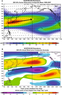 Our thanks to Mr. C.-L. Lin and the personnel of the Taiwan Forest Conservation Agency, also to C–S. Kang, Y.-H. Lan, S.-K. Huang, L.-S. Chiang, P.-Y. Chen, T.-T. Chen, C.-W. Yiu, and S.-W. Hsu for their assistance in the field and in the lab. Many of the figures were modified from images produced on the KNMI (Royal Netherlands Meteorological Institute) website (http://climexp.knmi.nl). Support for the Twentieth Century Reanalysis Project dataset is provided by the US Department of Energy, Office of Science Innovative and Novel Computational Impact on Theory and Experiment (DOE INCITE) program, and Office of Biological and Environmental Research (BER), and by the National Oceanic and Atmospheric Administration Climate Program Office. This research was partially funded by NSC Grant Numbers NSC 97-2627-M-002-023 and NSC 98-2627-M-002-011, and by the NSF Paleoclimate program, award ATM 04-02474.