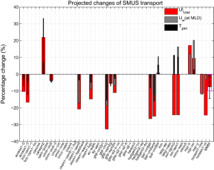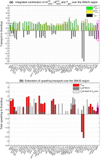 The net estimation of upwelling must in principle be consistent with the upward ocean mass transport diagnosed in the models (whenever available). However, this latter field is noisy (as recently emphasized by Oyarzún and Brierley 2018) and the depth at which the typical upwelling vertical velocity should be considered for comparison with upwelling indices is a difficult parameter to choose. Here, this depth has been chosen equal to the mixed layer depth averaged over the upwelling season (November–May) and over the SMUS region. In the models for which UItotal could not be computed (see last column in Table 1) we choose the depth where Uw is maximum.